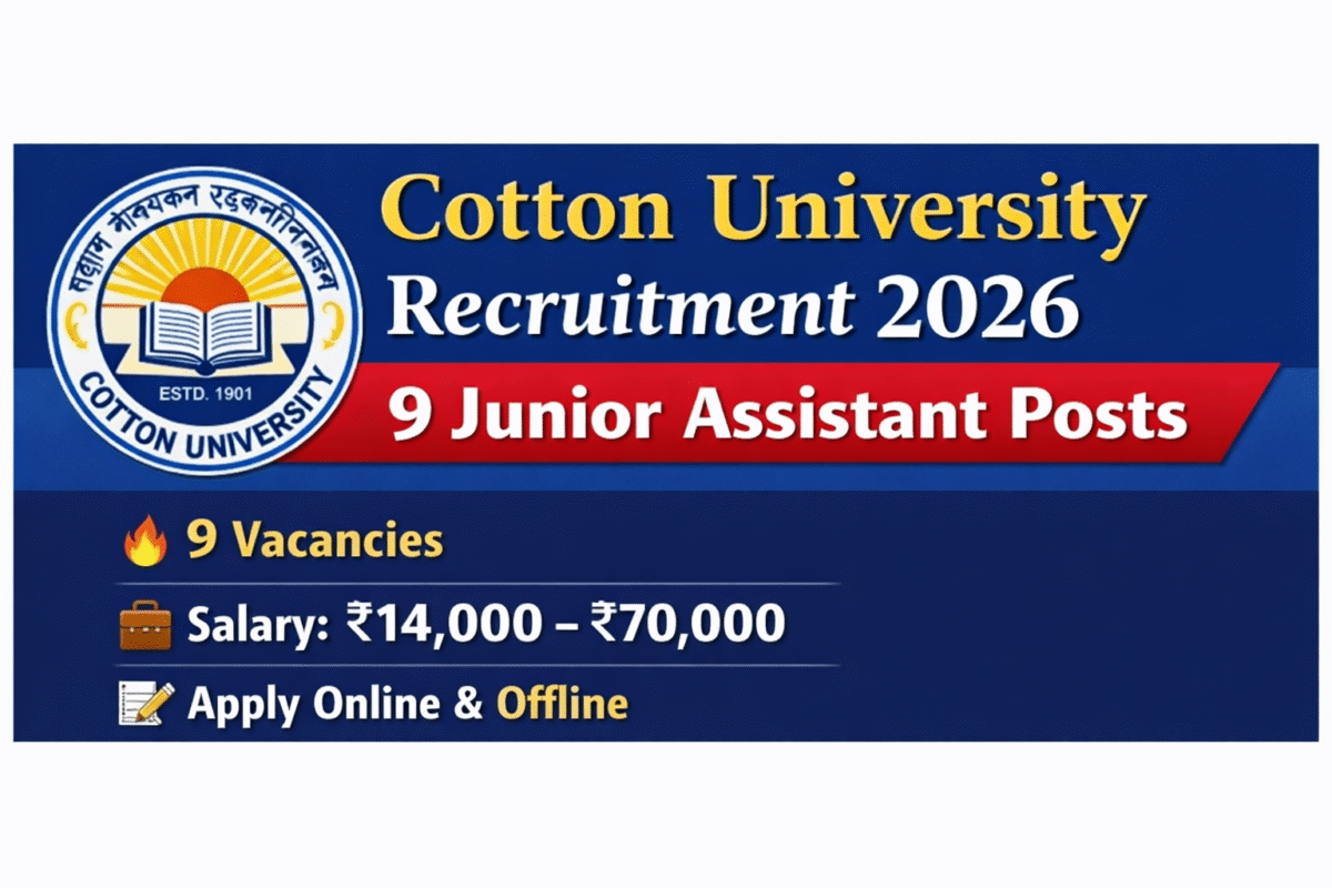 Cotton University has announced a recruitment drive for 9 Junior Assistant positions. Eligible and interested applicants can submit their applications through the online mode within the prescribed period.