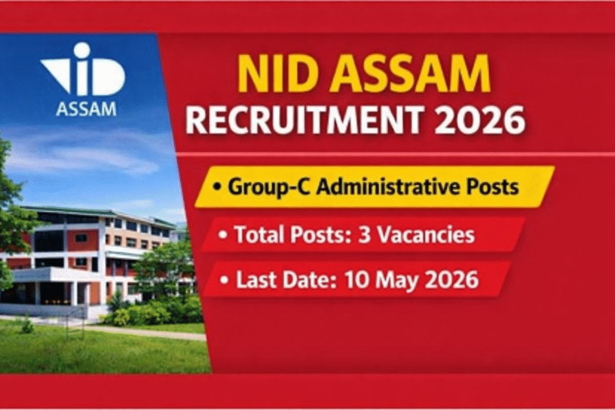 The National Institute of Design (NID), Assam, Jorhat has released an official notification inviting applications for the recruitment of 3 Group-C Administrative posts. Interested and eligible candidates can apply online through the official application portal.