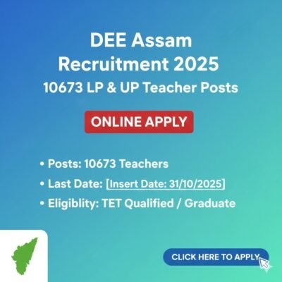 Directorate of Elementary Education, Assam.Last Date: 30/11/2025. The Directorate of Elementary Education (DEE), Assam has [...]